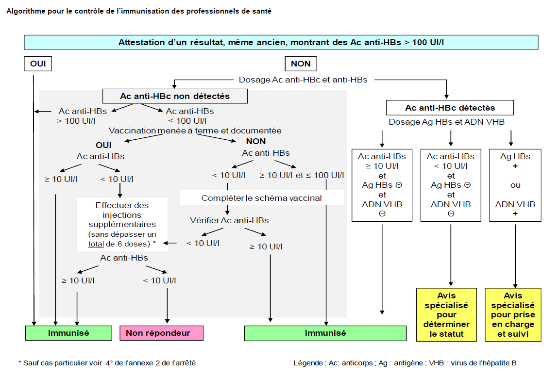 - la réalisation d’un contrôle des Ac anti-HBs un mois après la dose de rappel à 12 mois dans les situations nécessitant de dépister les non-répondeurs à la vaccination ;