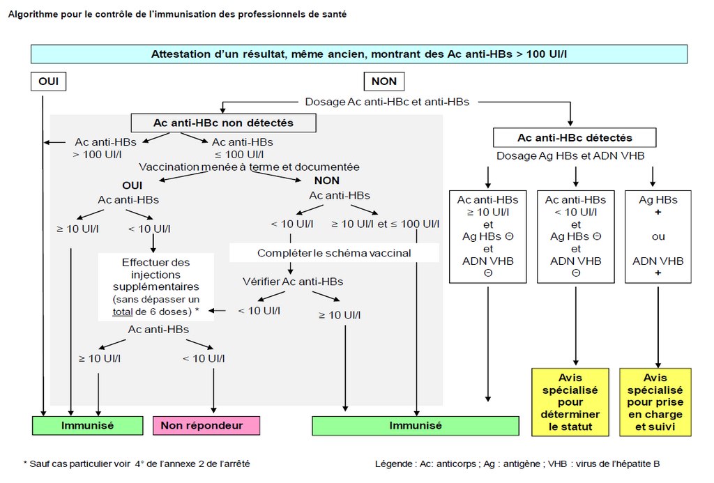 - la réalisation d’un contrôle des Ac anti-HBs un mois après la dose de rappel à 12 mois dans les situations nécessitant de dépister les non-répondeurs à la vaccination ;