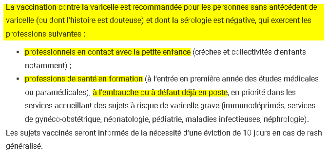 NB : Si une sérologie est prescrite pour lever le doute sur un ATCD de varicelle,